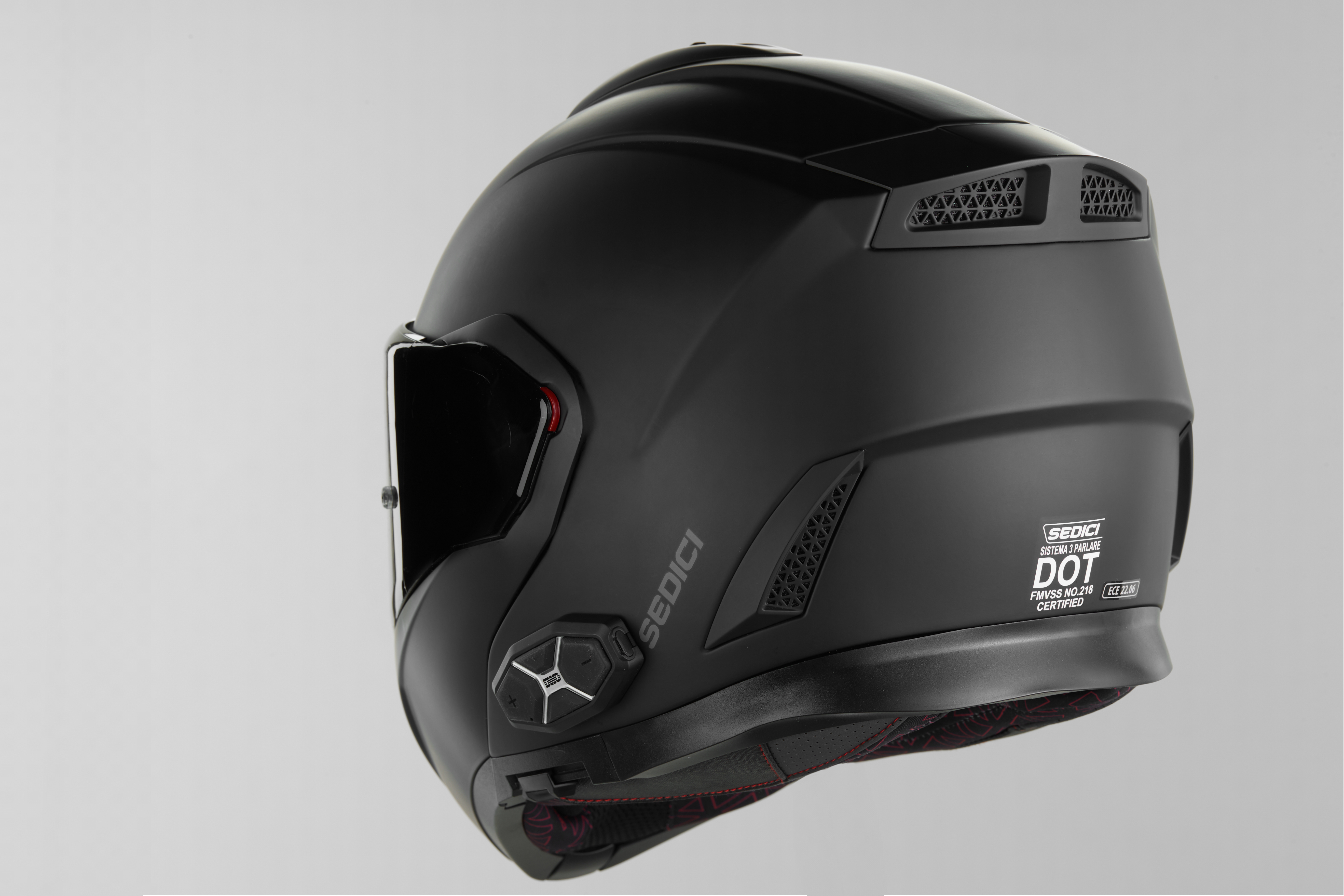 The Sedici Sistema 3 Parlare Helmet returns in a heavily revised package with improved Bluetooth 5.1 communications. A unique blend of fiberglass and resin is molded into an aerodynamic shell designed for reduced turbulence and lift, creating a comfortable high speed riding environment. The Sistema 3 Parlare's vent scheme and remapped EPS air channels route fresh air from front intake vents to rear exhaust ports - keeping the rider cool at all speeds. A stronger, re-engineered hinge and post mechanism for the modular chin bar helps the helmet achieve overall DOT and ECE safety certifications. An integrated Sena DWO-7 Bluetooth communicator makes the Parlare Helmet ready to pair with your riding group right out of the box. On this version's 5.1 Bluetooth platform, FM radio, a 1.2 mile range and pairing for 6 riders are some of the many features. With the quick swipe of a glove-friendly slider, a dark smoke internal sun visor deploys. The moisture-wicking interior offers an antimicrobial treatment and is easily removed for washing throughout the riding season.