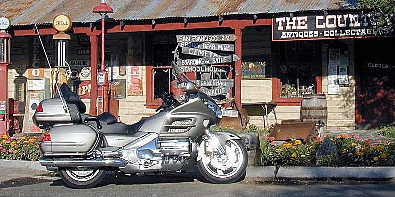 My wife Amy was kicked-back on the cush passenger pillion singing at the top of her lungs along with the ’80s station blaring from the Honda’s Panasonic stereo system, and we were slipping past cars in the outside passing lane of a flowing corner near the top of Highway 299’s Buckhorn Summit. Life was good.