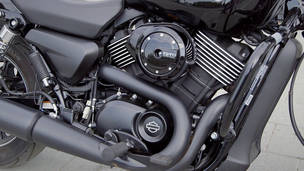 Despite the focus on making the Street functional, Harley did not forget that sex still sells motorcycles. The Street 750 is drenched in black and comes with currently stylish fork gaiters and a bikini fairing.
