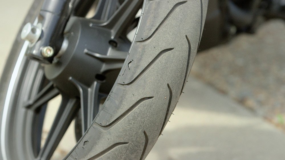The Michelin Scorcher tires are rapidly becoming a favorite of mine. I think they could be one of the best OEM tires I have used. RevZilla Product Specialist Ed Wildman has been riding for a long time, and I think he summed it up well: “You don’t even notice or think about the tires.” For a factory tire, I think that’s about the highest praise that could be given. The narrow sizes help keep the handling nimble.