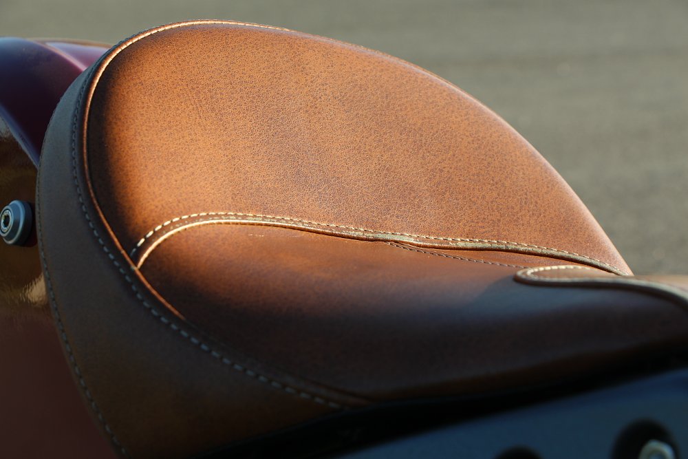 Due to its throwback styling, it was also imperative that the Scout not wear a skinny front tire, as is the current norm. Back in the original Scout’s heyday, front and rear tires were usually the same size, and the new Scout is close. The front is a ubiquitous 130/90-16, and the rear a 150/80-16. Bias-ply tires are fitted. More on those in a bit.