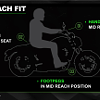 Through the combination of two bar sizes, three seats, and three peg placement options, the fit can be customized for almost any rider. On the launch, we had literally every shape and size rider of both genders, and everyone was able to find a configuration that fit well.