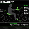 For riders under 5 feet tall, Kawasaki recommends the reduced-reach fit, which pairs the reduced-reach bars, which are 1.42 inches closer than stock, with the reduced-reach seat, which moves the seat two inches forward, and puts the pegs in the rear position, which moves them an inch back from stock.