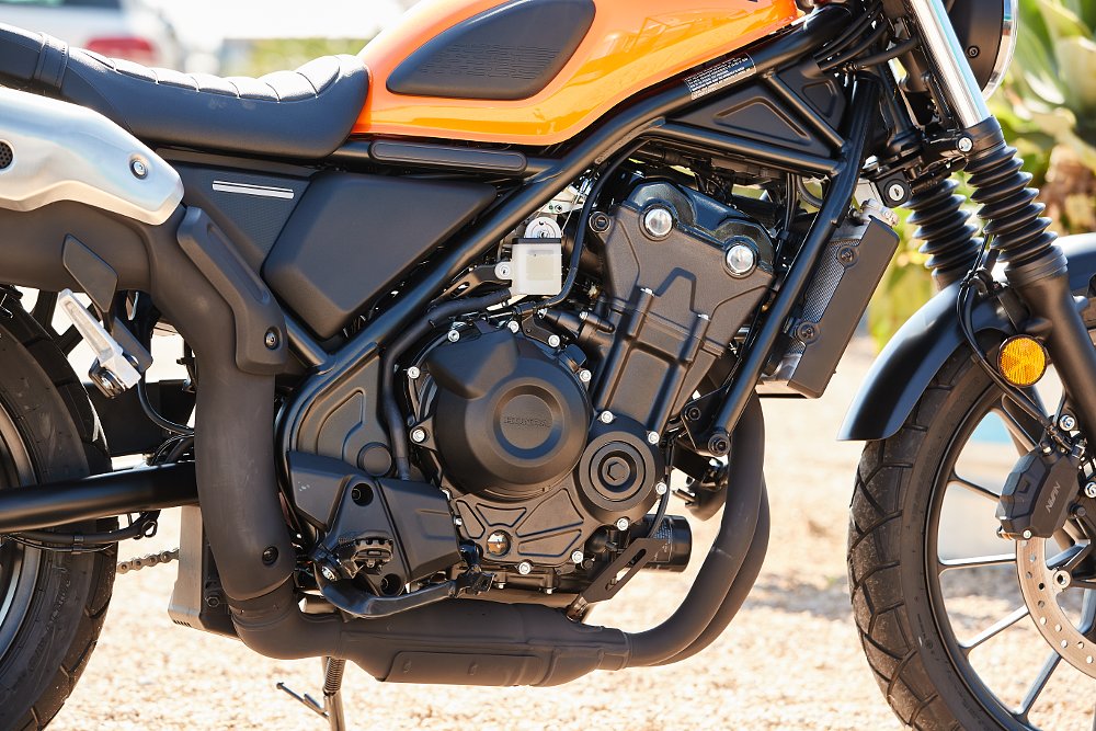 It’s easy to draw parallels between Honda’s neo-scrambler and its mid-size cruiser. That's both visually and mechanically. Be that as it may, the SCL isn’t merely a Rebel 500 on stilts. Honda’s proven 471 cc parallel-twin returns to power yet another model, but a new intake, exhaust, and revised fuel mapping set this rendition apart. Honda doesn’t list the model’s peak horsepower or torque in these litigious states of America, but power figures listed in other markets serve as a reference point.