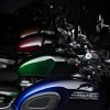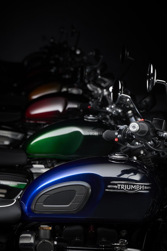 The painting process consists of a metallic ‘Silver Ice’ base, ‘Sapphire Black’ graphite vignette, and multi-layer tinted lacquer. Triumph claims the gradient reveals various hues and tones “under different conditions and appearing different from every angle.” The hand-painted finish also results in subtle variations between each unit, further individualizing the Stealth Editions.