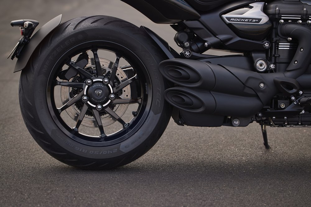 More is more isn’t the only lesson Triumph learned along the way. It also discovered that black is best (at least where bikers are concerned). Buoyed by the success of the limited-edition Rocket 3 R Black and Rocket 3 GT Triple Black, the Hinckley brand gave customers what they wanted: blacked-out components. They applied both lessons to the 2025 Rocket 3 Storm R and GT.
