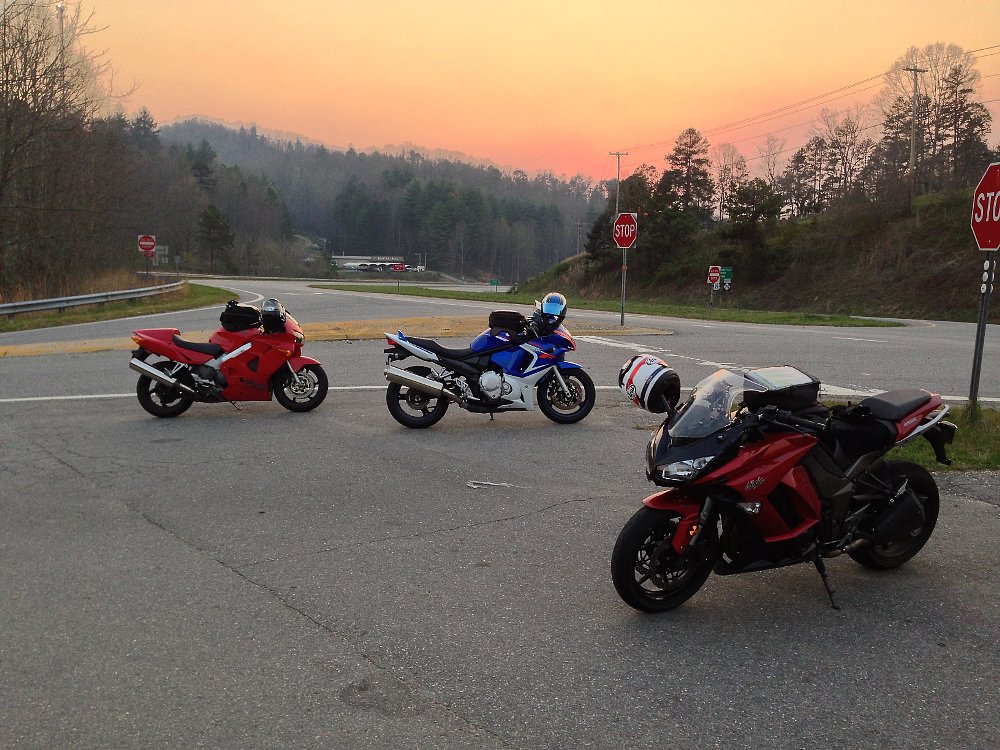 I left home on Tuesday night and at dawn on Wednesday I was sipping my morning coffee near the entrance to the Cherohala Skyway in eastern Tennessee. That's where I met Dave and Charlie. These two guys were easily in their 60s, wearing wild grins and riding a Ninja 1000 and Suzuki GSX-650F, respectively.