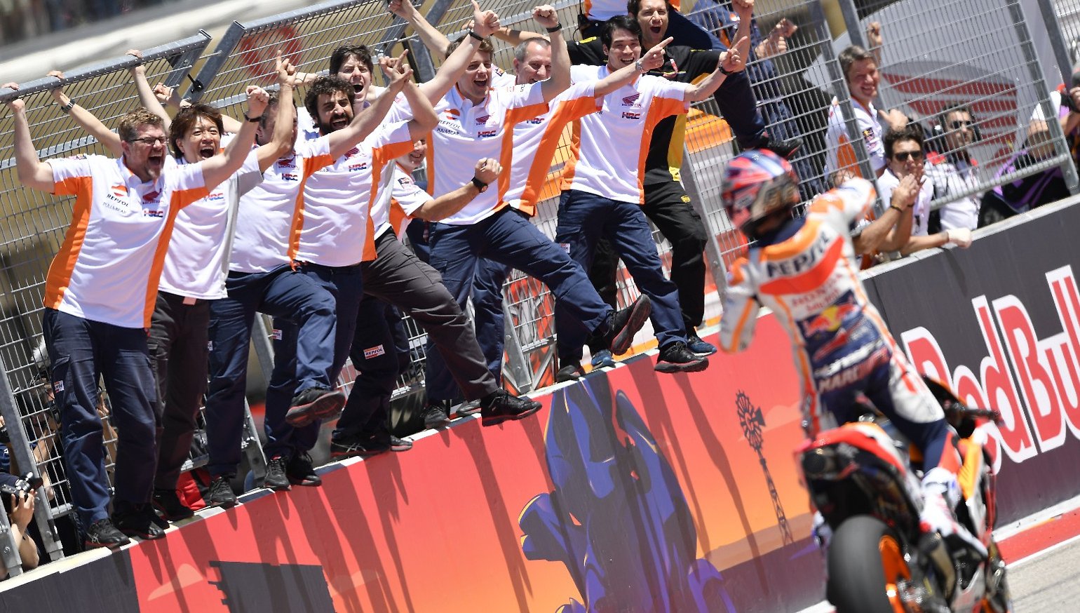 Those U.S. wins included both lasting milestones and dramatic moments, too, such as Márquez's 2014 victory at Indianapolis to tie Mick Doohan's modern-era record of 10 consecutive wins, or the dramatic qualifying session at COTA in 2015 when Márquez's motorcycle died with three minutes left, so he jumped over the wall, sprinted back to the pits, hopped on his backup bike and put in a new fast lap to take pole position.