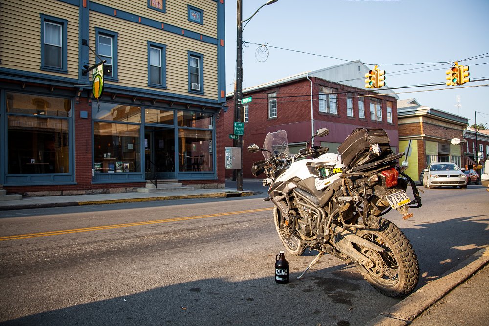 I pointed to my Tiger 800 XCx parked out front and she beamed, revealing that she was the proud owner of a Kawasaki Super Sherpa. From the conversation that followed, it sounded like there was a decent contingent of dual-sport riders in the area. Based on Millheim’s location, this didn’t surprise me.