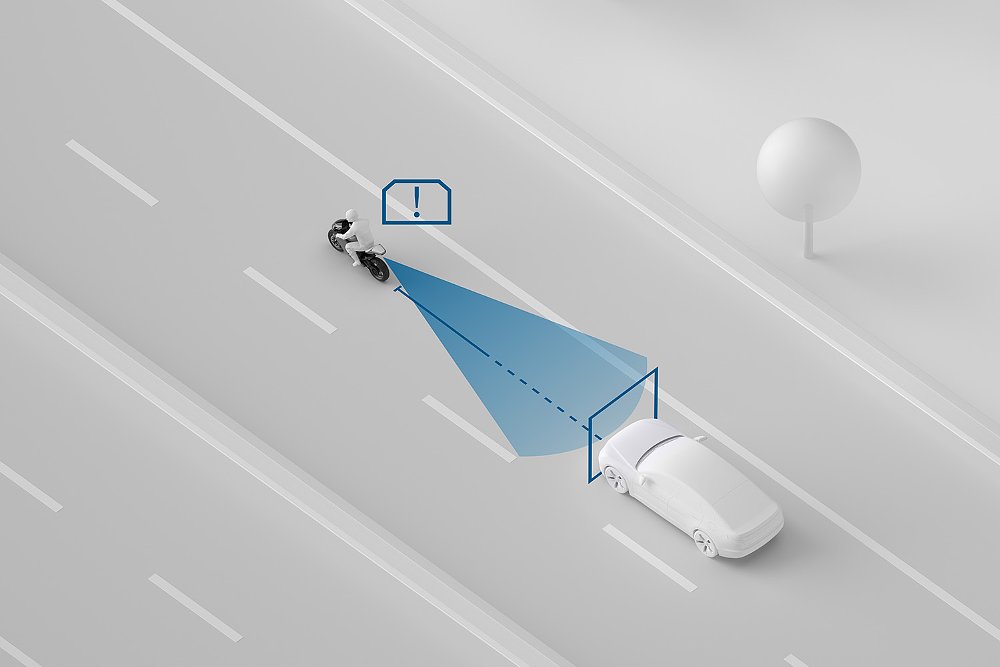 - Rear Collision Warning (RCW) also leverages the rear-facing radar to determine whether a rear-end collision is imminent. When triggered, the system flashes the motorcycle’s turn signals to try to get the following driver's attention.