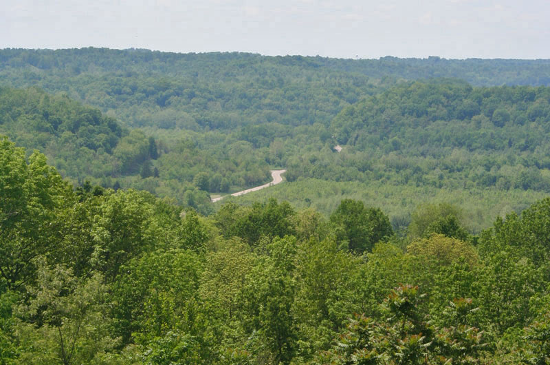 Outside of Woodsfield again, we follow Ohio Route 26 south toward the old river city of Marietta, the first permanent European settlement west of the Ohio River, established in 1788. Where 536 and 255 looped over the hills, 26 slithers down the valley through the Wayne National Forest. One year, following a particularly nasty spring flood, I rode 26 and saw debris hanging 10 feet high in the tree branches.