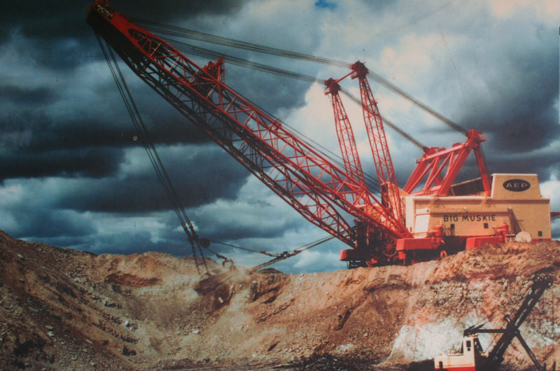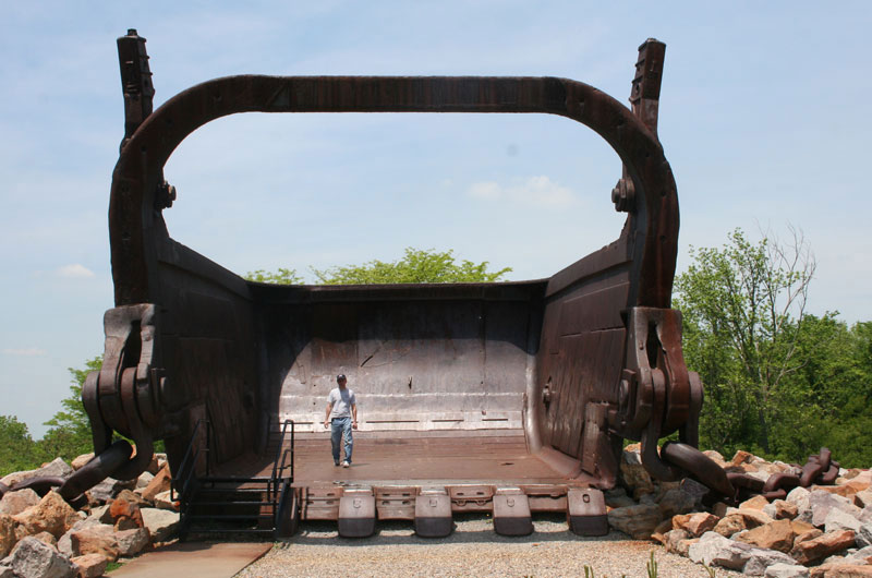 Big Muskie was a machine built to strip mine coal from these eastern Ohio hills. It’s hard to imagine its size. Big Muskie measured 487 feet long from the back of its housing to the end of its boom and it moved 39 million pounds of material an hour. When the mining was done in 1991, Big Muskie was dismantled. The only thing saved was the bucket, which is now on display at the Miners' Memorial Park near the intersection of Routes 78 and 83.