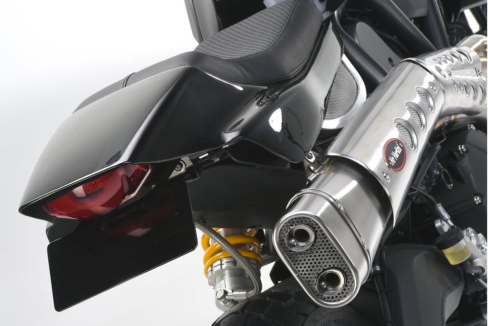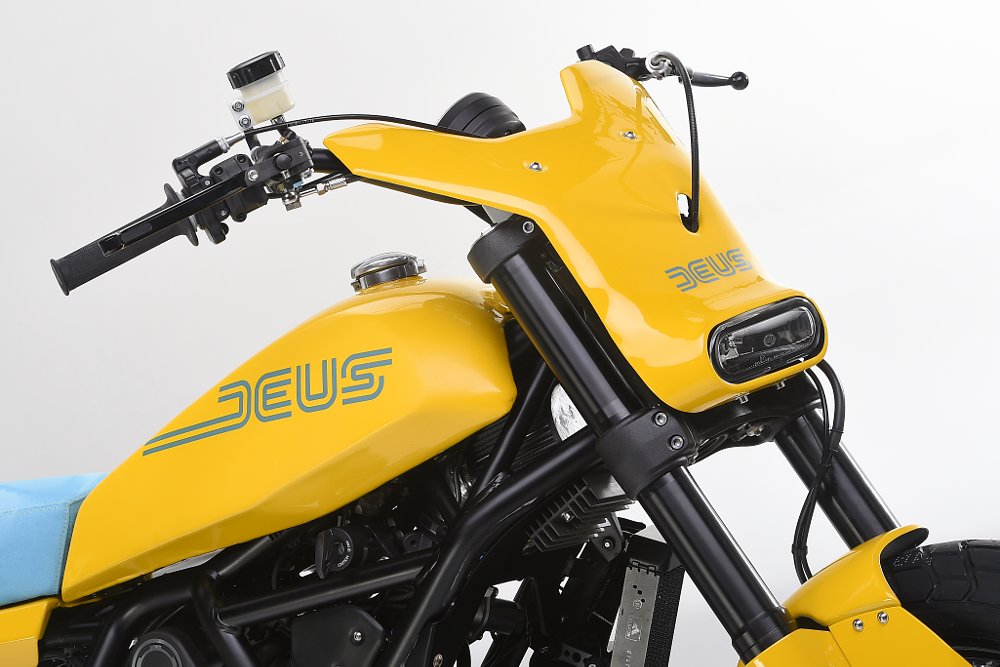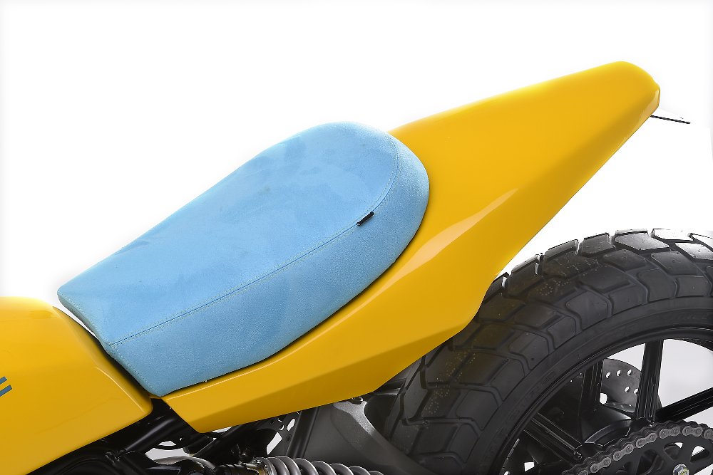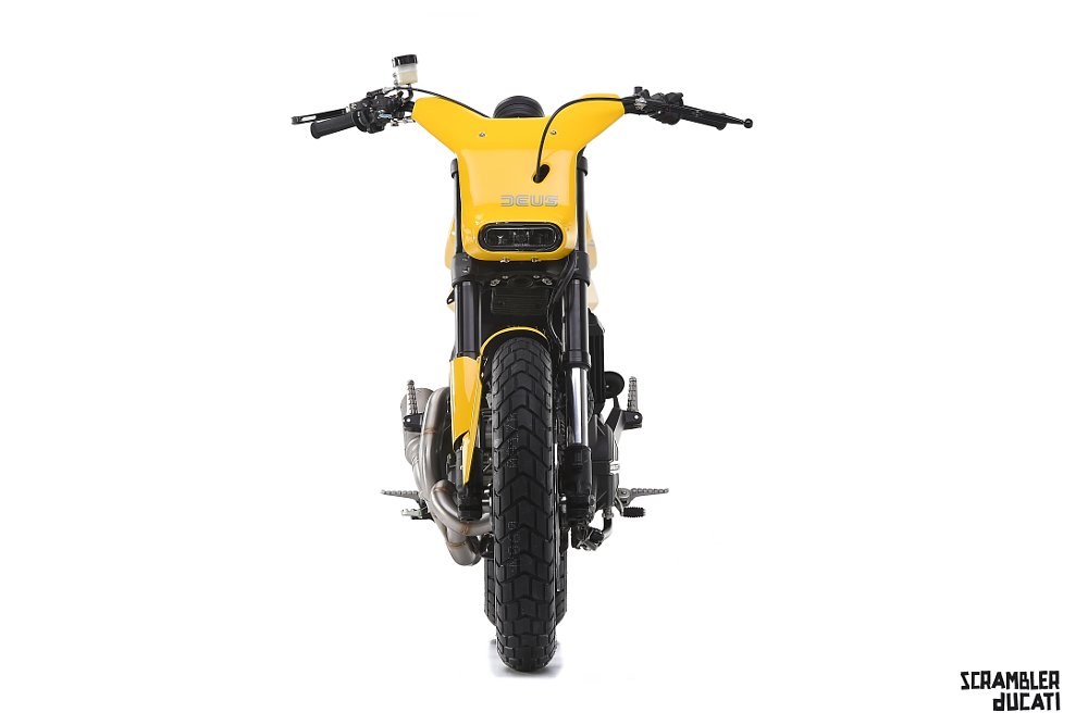 The Deus Full Throttle is easily the most polarizing of the three customs. While most of it isn't my cup of tea, I do like that they've solved my biggest problem with the aesthetics of the bike: the curve in the frame under the seat. Maybe I'm weird, but the lack of a flat seat makes the Scrambler look far more strange to me than the low pipe, mostly because adding a high pipe will be easy. I'm not in love with how the rear cowl tapers at the end in this version, but forming it to hide the rear frame of the bike is pure genius.