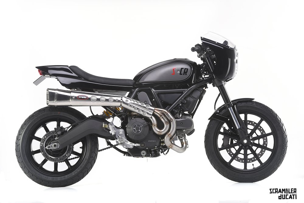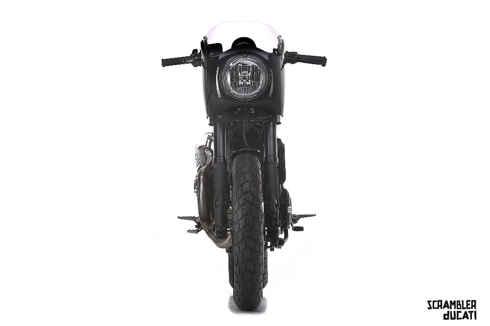 I'm surprised Ducati didn't release some sort of cafe version of the Scrambler. Why Mr. Martini chose the Urban Enduro to turn into a bullet-fairinged cafe is beyond me, but the result reminds me of the Moto Guzzi V7 Racer. This is easily my least favorite of the three. The height of the headlight and slight upward slope of the tank have it looking a little more upright than most cafe builds, and that flat bar almost looks like something out of Sons Of Anarchy behind that fairing. Also, how is this the one that got a high pipe?