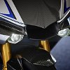 The 998 cc engine is all new, though it still uses the inline four-cylinder cross-plane crankshaft model. The new engine is slightly more over-square, with a bore and stroke of 79 mm by 50.9 mm (from 78 mm x 52.2 mm). Yamaha hasn't released power figures yet, but rumors put it north of 200 horsepower.