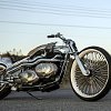 When it came to styling, Yoshizawa-san deliberately steered away from the salt-flats racers that influenced the engine setup. "Land-speed racing feels somewhat distant from mainstream custom culture in Japan," he says. "Choppers, on the other hand, are extremely popular. Debuting a dual-engine chopper would create a much stronger reaction, and personally, I've always loved choppers." As a result, the Enfield's chassis features a rigid rear-end design paired with a handbuilt, plate-steel girder fork. The top frame tube was designed with strength in mind, while detachable lower rails allow the tightly packaged engine to be installed or removed.