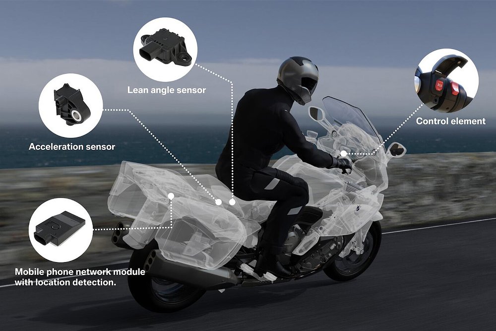 BMW was the first motorcycle OEM to offer onboard crash detection when it debuted Intelligent Emergency Call (IEC) as an option in 2016. Unlike the Formula S helmet, which hinges on Bluetooth connectivity and the user’s mobile device, IEC benefits from its own mobile network module. When the bike’s acceleration and lean angle sensors detect a spill, the program contacts one of BMW’s qualified call centers.