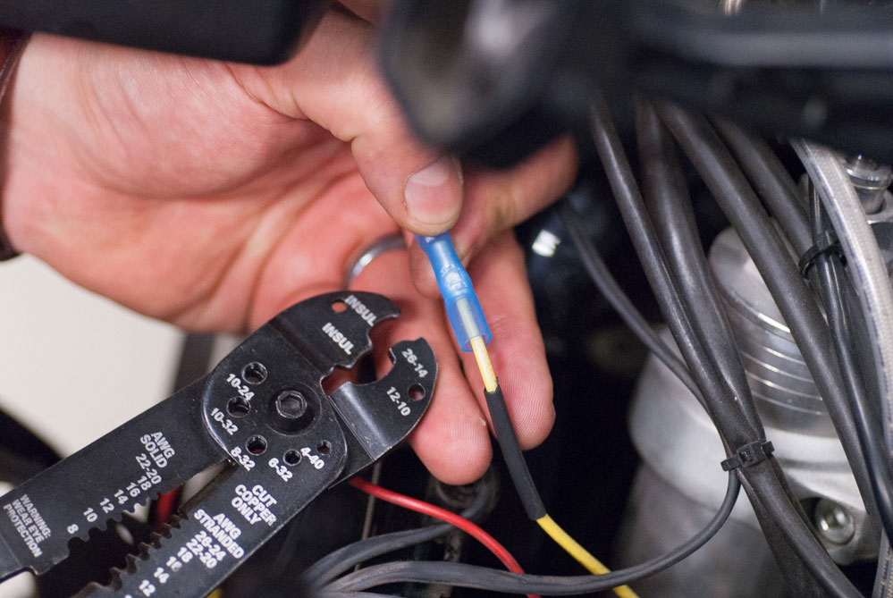To be honest, this is a lot of tips masquerading as one. If you elect to crimp, do so correctly. Crimping sometimes gets a bum rap, but it can be a super-strong and stable way to join wires — when it’s been done correctly. In fact, in many corners of the aviation world, soldering is not permitted by governing bodies. Crimping is the way they join wires. I have found heavy vibration has broken my soldered joints in the past, and if Ryan’s V-twin Ducati shakes and quakes half as much as my old Harleys, vibration could be an issue. Here are a few pointers: