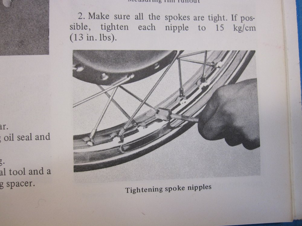Consider the size and weight of the bike. Big heavy powerful motorcycles like ADV bikes or cruisers generally have wheels with fatter spokes that are very tight. Smaller, older bikes that are lighter and have less powerful engines generally will have wheels with thinner spokes and smaller nipples that do not require the same tension. Dirt bikes are an exception since they are lightweight but require very strong wheels so they generally have heavier duty spokes and nipples under relatively high tension.