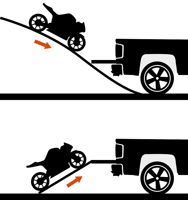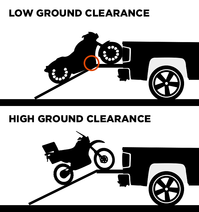 In the same vein, your choice of ramp will also be dictated by the bike you have. You can get away with a steep ramp — or a non-arched one — if your bike has good ground clearance, like many off-road machines offer.