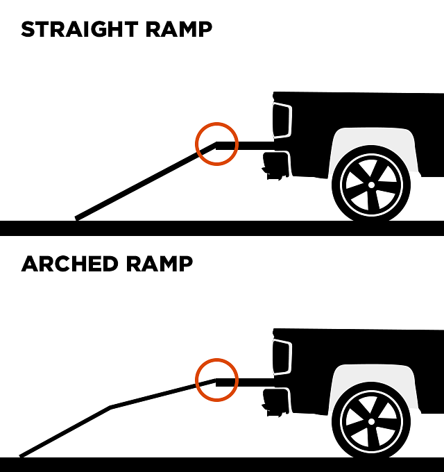 The ramp: There are all sorts of ramps on the market. I think arched ramps have a lot going for them as they really help mitigate the effects of breakover angle. Effectively, an arched ramp breaks one fairly sharp angle into multiple smaller angles. What does this do for you? It reduces the likelihood of "hanging" your bike on a low-hanging frame, fairing, or exhaust.