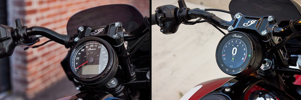 In standard form, the made-over mill pumps out 105 horsepower (at 7,250 rpm) and 82 foot-pounds (at 6,300 rpm), according to Indian’s bench tests. Listed at 111 horsepower, the up-spec SpeedPlus powering the 101 Scout is reportedly worth an additional six ponies. Aside from that one exception, the Scouts share the same core components. The siblings sure don’t share one another’s style, though.