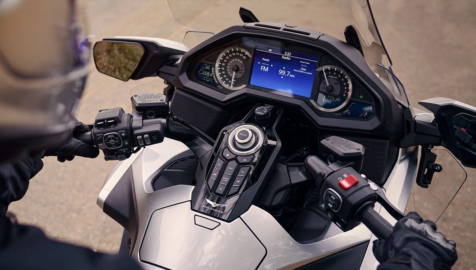 Buttons. There are too many of them, I tell ya. I present the Honda Gold Wing’s cockpit as Exhibit A. Note the duplicate Home and Back buttons located on both the switchgear and tank console. Users can even navigate the system via a directional pad or centrally located scroll wheel. Seems redundant, if you ask me. Honda photo.