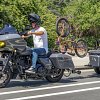 “Once I began using the Road Glide, it all got a lot easier. It’s a bigger bike with more power, more stability, and it’s as wide as the trailer, so if the bike fits then the trailer fits.” Besides getting comfortable splitting, Jared has made some other improvements over the years. He fabbed up better supports so the bike and ramp are more stable, he had a larger landing ramp made, and is using the trailer’s cooler tray to carry a generator.