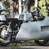 The transformation continued with the development of an all-new rear end. A custom subframe establishes a more aggressive, race-inspired stance. Sitting over the trellis chassis is a GP500-inspired cowl with another classic-looking round lens integrated into it.