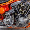 To give the wild new bodywork a suitably unique podium to sit upon, James modified the frame. Along with smoothing all of the welds, he hollowed out a window in the frame neck and installed a chrome-plated "country bar" that is removable to make fitment and removal of the engine easier (it's a Troublehead, after all). Sitting within the frame there's also a custom-made oil tank and battery case finished in the same hi-vis metallic orange as the rest of the bike.