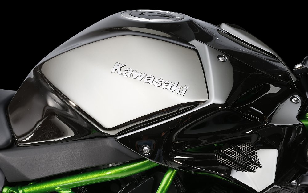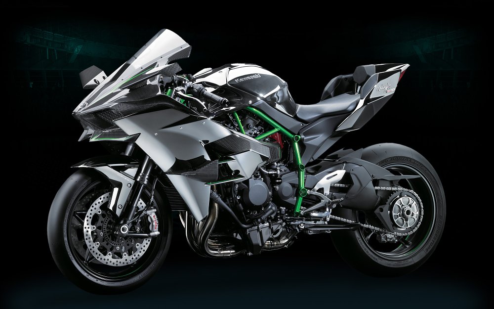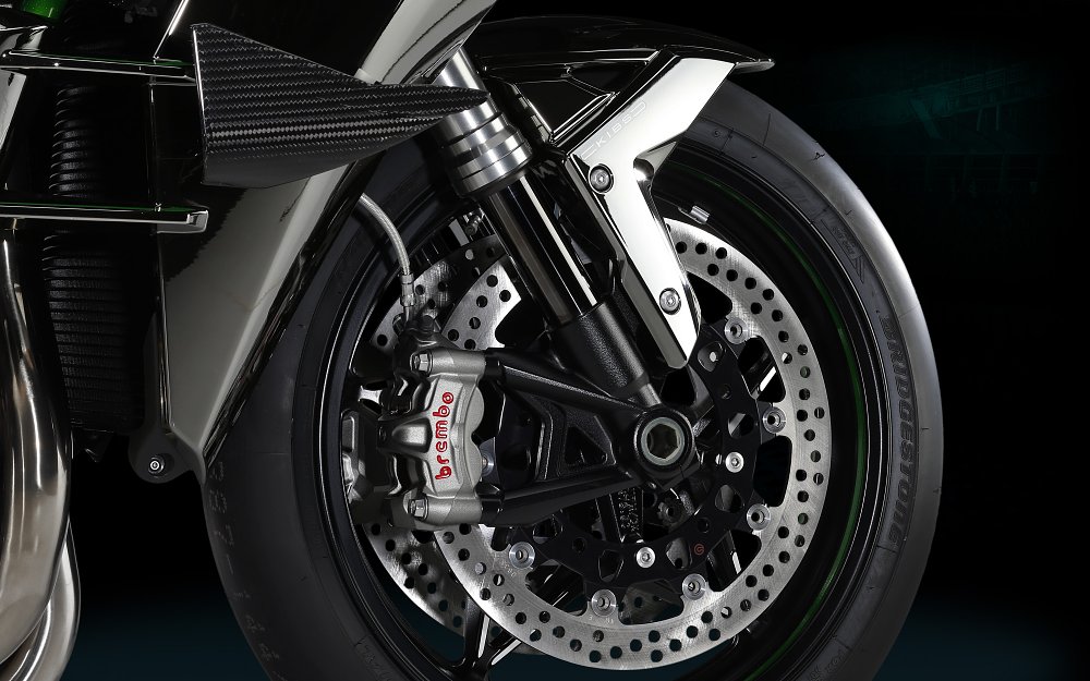 Everything else you've read and seen is true. It has a centrifugal supercharger. It has a steel-tube trellis frame. That power will be connected to the road with tires and not wings. Though I feel sorry for the rear tire. Since it's not street-legal, the H2R rolls out of the factory on slicks.