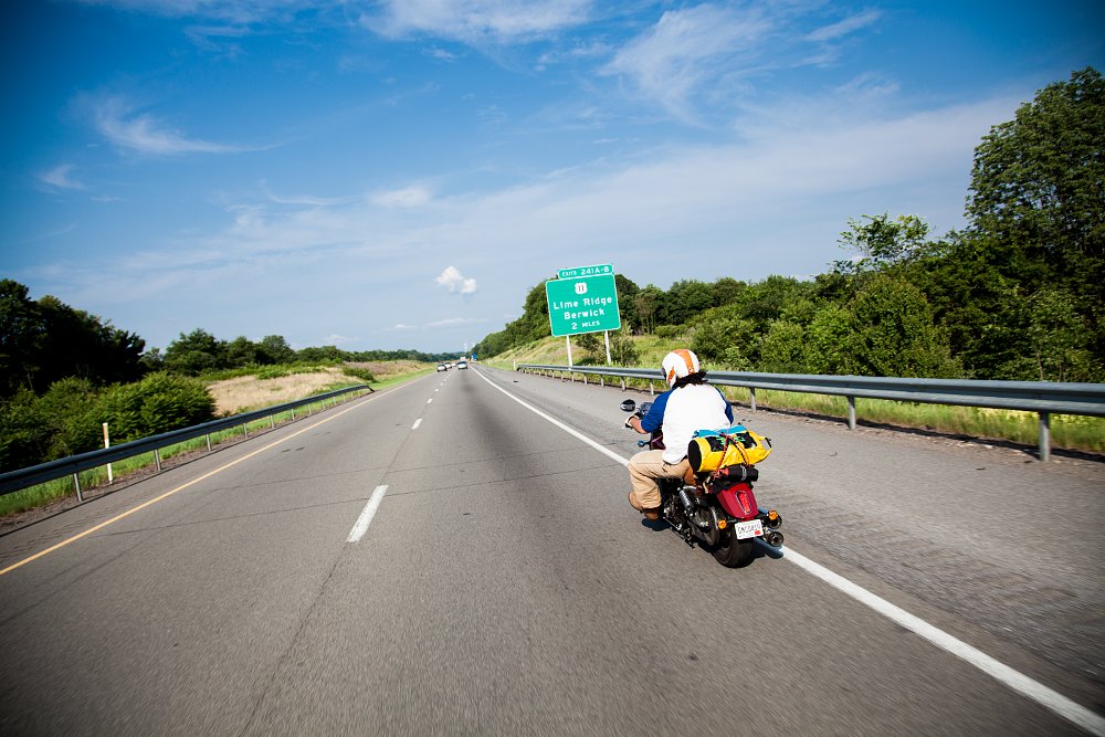 July 12, 7:15 a.m. - 5:15p.m.: Finally hook up with U.S. Route 6, which is a very picturesque road, but this part of the story stinks. What am I supposed to do, report on all the quaint little towns and the places with curvy roads? We are having fun, but making terrible time. And we added mileage to our route. Decide to run I-80 west to east across Pennsylvania. In 10 hours, nothing changes but the level of fuel in the tanks and the soreness of our asses. We consider taking dual sick days on Monday. Realize that looks fishy. Continue riding.