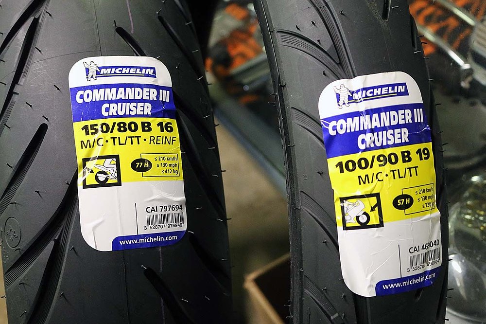 Michelin reps also hyped its Premium Touch Technology. By touch they mean styling. The design of the Commander III was in large part consumer-driven with the question “how does it look on the bike” at the forefront of research. As a result, the Commander III’s sidewall designs are patented. Apparently, V-Twin riders want a good-looking tire on their good-looking bikes, hence the emphasis on the Commander III’s styling.