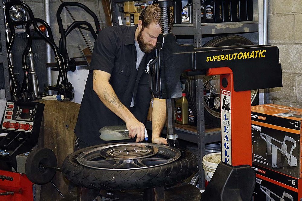 On the 2004 XL1200C we were already running a Commander II on the front, giving us a good baseline for comparison with the updated III’s. We made a run over to N/A Performance Cycles to have our buddies Durham Allen and Duane Clark spoon them on for us. Having a healthy relationship with your local shop is always important, and small independent shops like N/A are the heartbeat of the motorcycle industry.