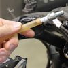With your spark plugs out, it’s good to give them an inspection and look for clues about what’s going on inside your engine. While there’s a lot of nuance to “reading” a plug, the general idea is this: the insulator should be light tan to dark brown. If it’s black and oily or white and blistered, something’s not right. Please note that modern EFI bikes often have plugs with a light gray appearance than would be considered lean on a carbureted bike.