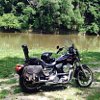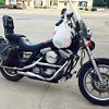 What I quickly learned was that it was slow, actually did handle decently, stopped like shit, and I really liked it. It was kind of goofy looking with its stock buckhorn-style handlebar, billboard windshield, crappy air forks, and OEM leather bags, but it was ultra comfortable to ride and my wife loved riding on it (that's rare) so I kind of fell in love with the bike just as it was. Over the next few years, I just rode the bike in stock configuration, except for the set of slip-on mufflers that was on it when I purchased it. Eventually, I put a T-Sport-style fairing on it that I scored out of the J&P clearance tent with a broken windscreen and swapped the bar for my favorite handlebar, a Biltwell tracker.