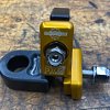 The rest of the bike is covered in small details that I think really pull it together. The Alloy Art billet front engine mount is too pretty to hide, so I took the time to move the voltage regulator under the transmission just to show it off. I added a few other gold Alloy Art bits in the form of their MX shifter peg and billet shift linkage. Another gold bit that is a huge upgrade from stock is the Bareknuckle Performance axle adjusters. The stock adjusters are absolute garbage and these not only look amazing but are also much more durable than the flimsy stock adjusters. Holding the wheel in place with those same adjusters is another Bareknuckle part. Their stainless steel axle kit really rounds that area of the bike out and makes it as strong as possible.