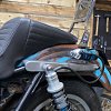 I was trying to keep the old look of the bike but I couldn't help but upgrade to LED lighting. There isn't much for lighting on the bike, just a headlight and taillight, but because they are a Hogworkz Halomaker headlight and a Custom Dynamics LED taillight, you can see them both extremely well.