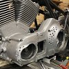 Moving on down to the primary drive I went a bit outside the box. I opted for a BDL enclosed belt drive that I made kind of not enclosed. I chopped up my stock primary cover to expose the hot rod dry clutch and belt drive that reside underneath. The Swiss cheese aluminum cover that I hit with a Scotch-Brite pad to dull the finish also has the added functionality of keeping the belt and clutch system cool. For my final drive, I opted for a chain and sprockets, giving me the ability to to adjust my gearing.