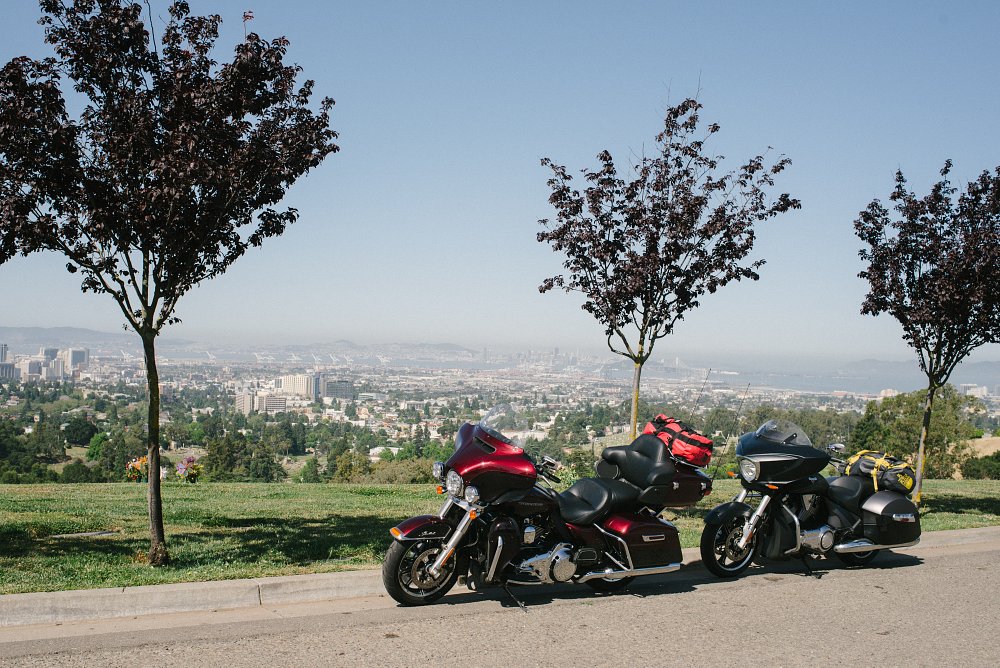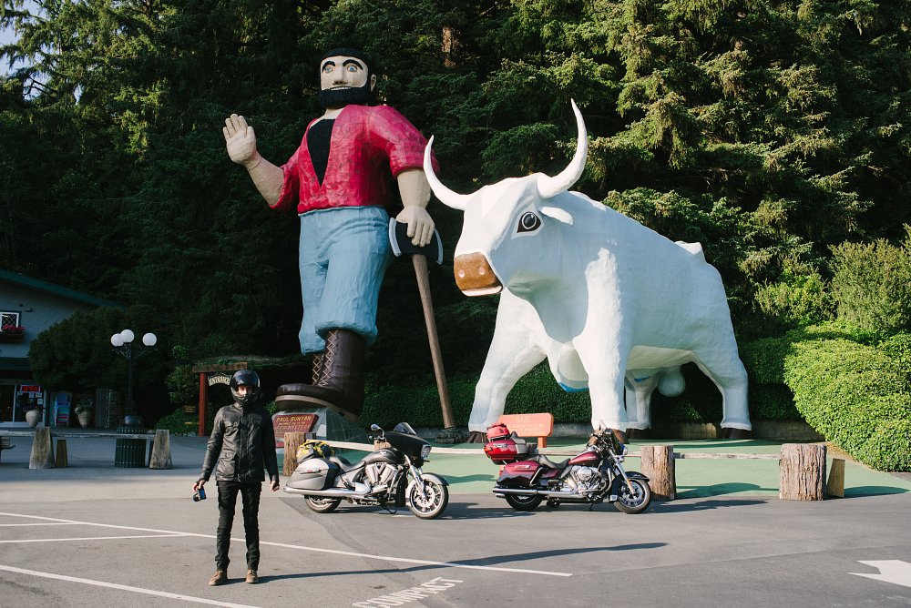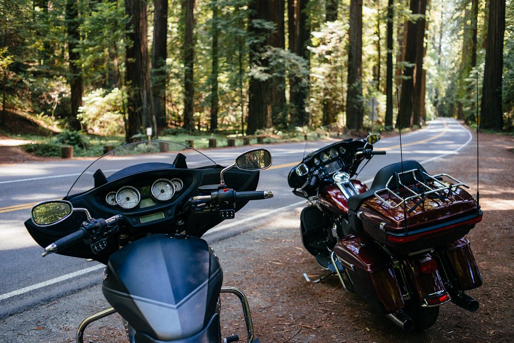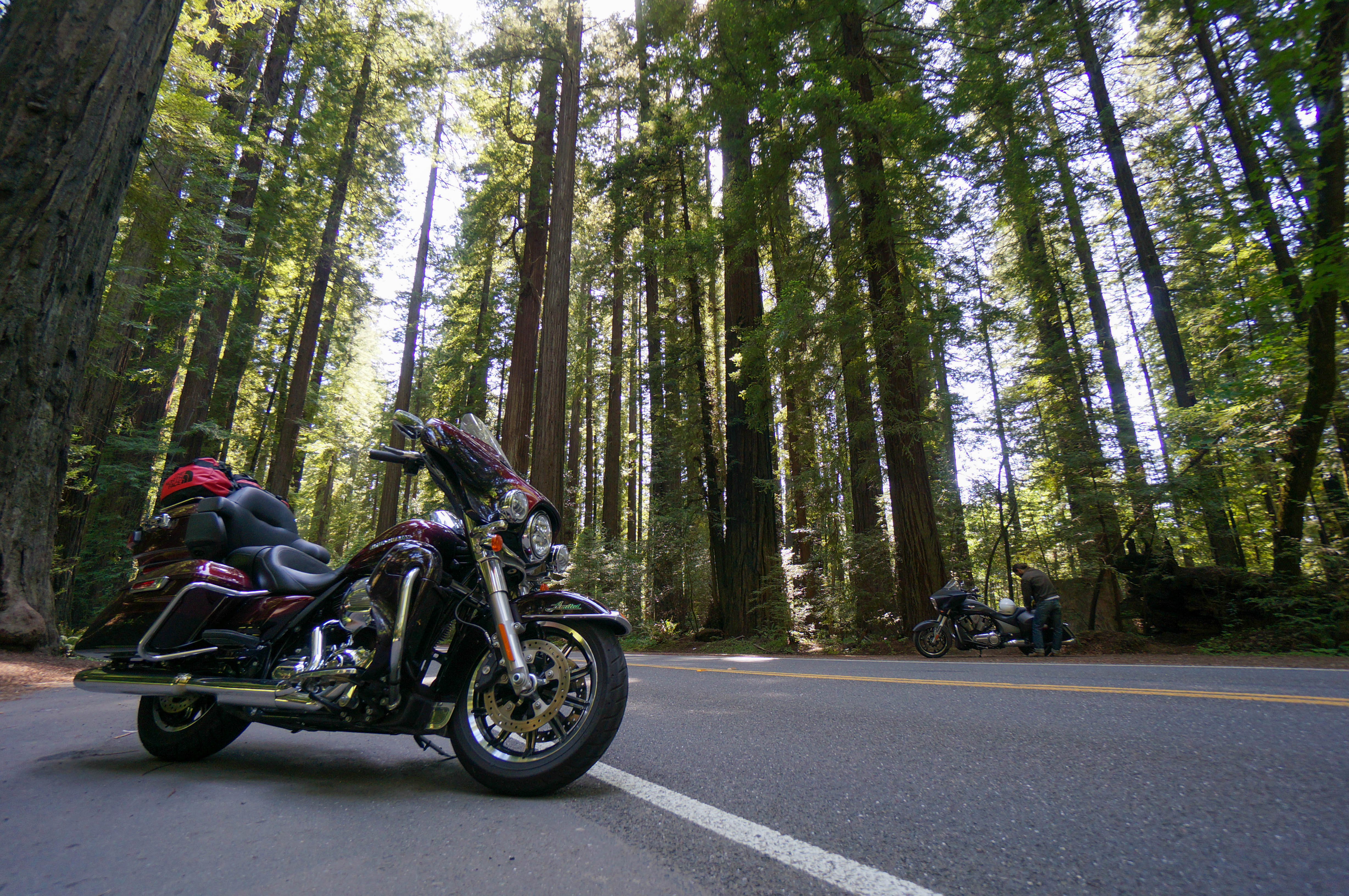 Paul and Babe were unimpressed by our hogs. Photo by Samson Hatae taken in the Redwoods National Park, California.