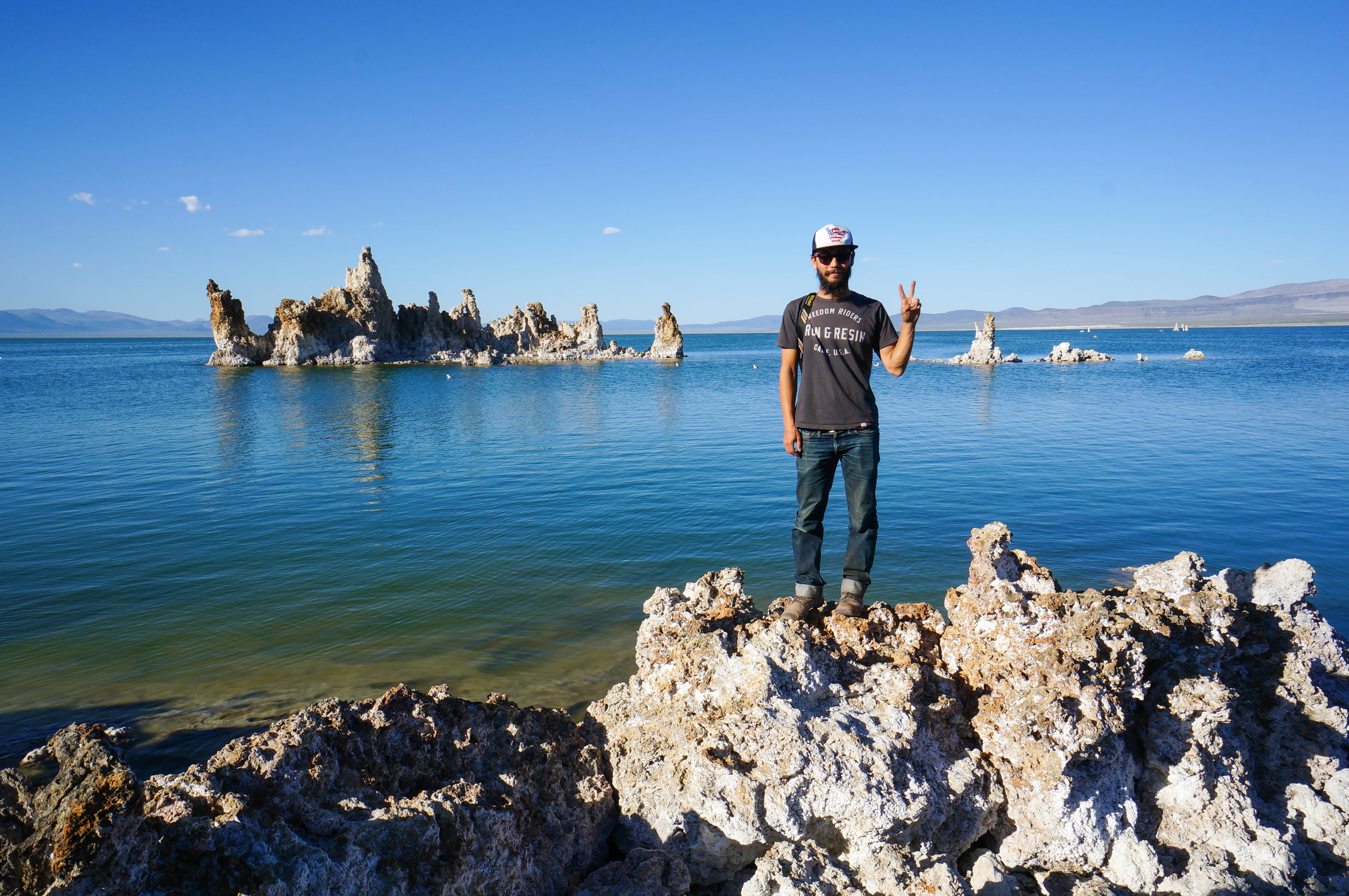 Sammy doing tourist things. Photo by Sean MacDonald in Mono Lake, Calif.