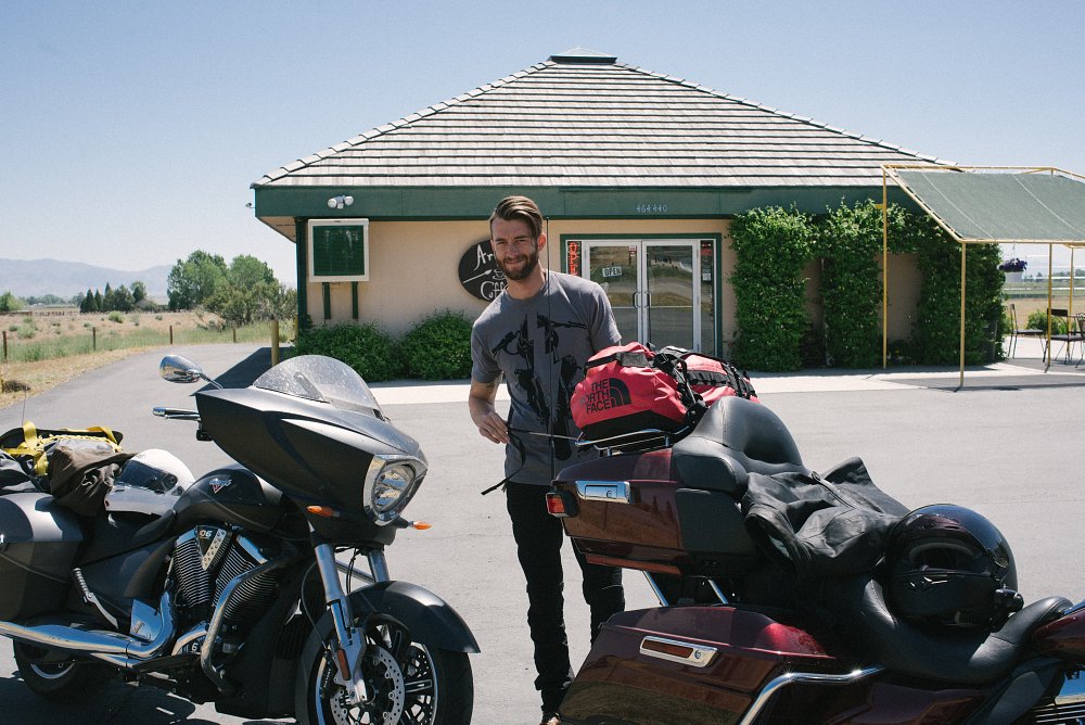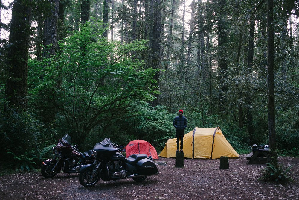 Each stop meant gas for the bikes, beef jerky for our bellies, and getting to share the last two hours worth of ideas we’d had about the next leg of the route. Photo by Samson Hatae in Mendocino, Calif.