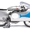 Under that gorgeous fairing is a DOHC 125 cc four-stroke single with a four-speed gearbox. This is no replica, but the result of a years-long restoration by Giancarlo Morbidelli. In its heyday, riders like Sammy Miller and Cecil Sandford tucked in behind the swoopy nose; the two scored fourth and sixth respectively in the 1957 125 cc World Championship.