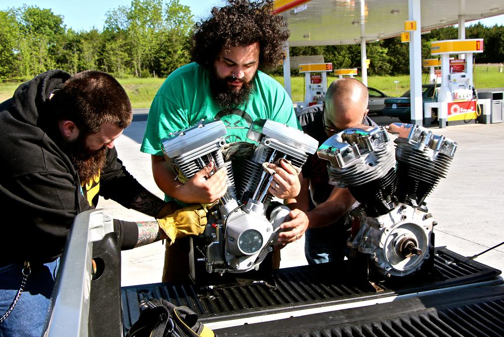 Lemmy, RevZilla’s self-proclaimed “Good Harley Guy,” was piloting the tiny truck as we made our way back from a filling station just outside of Front Royal, Va. We had left Philadelphia just before 5 a.m. in an effort to reach our destination by 8:30 a.m. Our mission: to swap a brand new Harley Evolution crate engine for a freshly rebuilt Shovelhead motor. That done, we headed back to Philly to attend “Ride to Skate: Eight,” a chopper rally raising money for the FDR Skatepark.