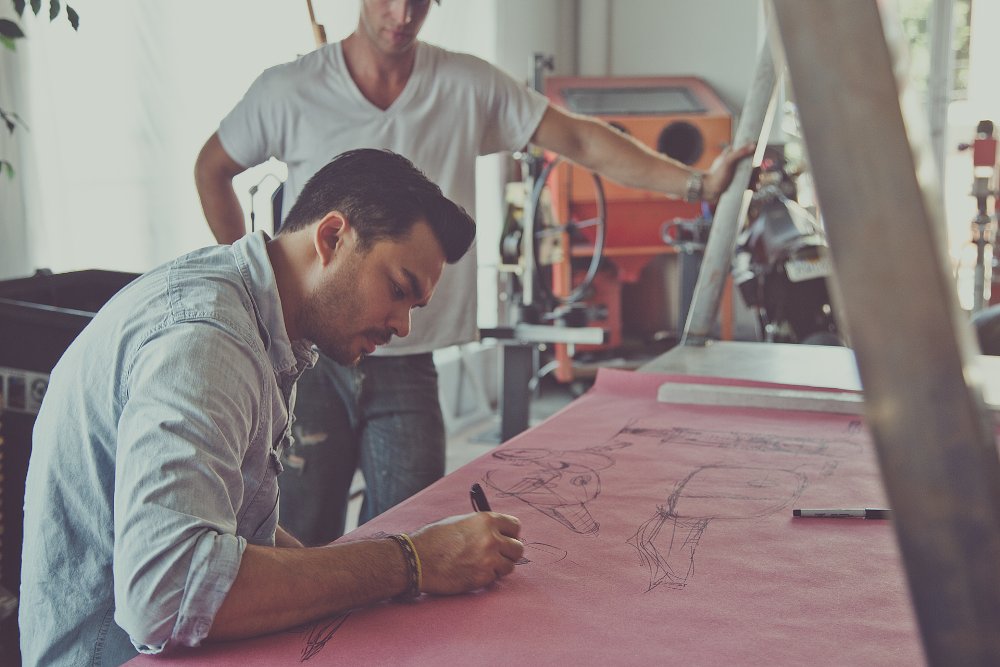 The story goes like this: Shaik was hanging out with his friend (and master builder) Max Hazan, bitching about the current state of motorcycles, as most guys into bikes of this sort normally do, and they started kicking around the idea of a build. Max's builds would normally be considered "show builds," and the idea of doing something so useful interested him, especially given Shaik's taste and talents as a designer. Shaik found the donor bike completely stock and started drawing.