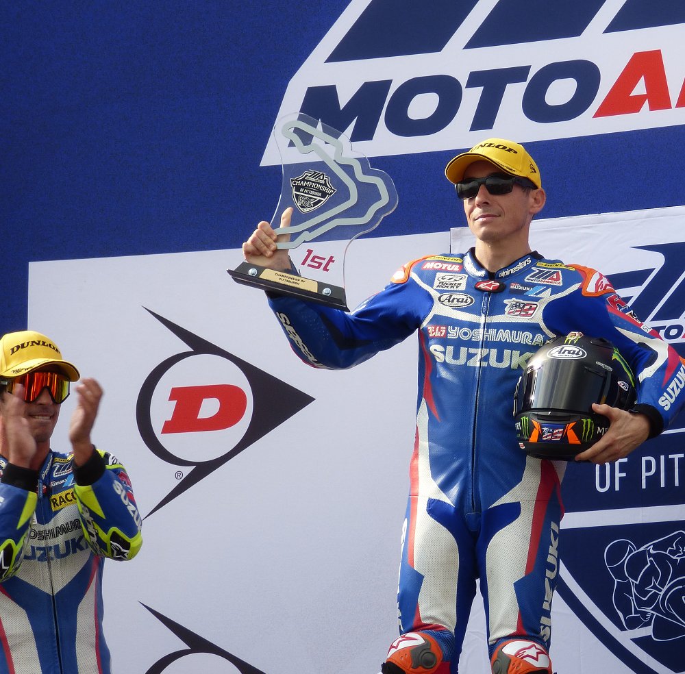 After a third-place on Saturday, Hayden’s Yoshimura Suzuki team made some changes to the setup on his GSX-R1000 for Sunday that he said helped him in the areas of the track where he had been weakest. With a good start in Sunday’s race, he converted his pole position into a 2.1-second lead by the third lap and a 3.3-second advantage by the fifth lap, which was when Saturday winner Cameron Beaubier finally was able to push his way past Elias on the other Yoshimura Suzuki and move into second place.