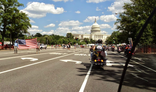 At the Pentagon, we joined thousands upon thousands of other motorcyclists and chatted with them as we waited our turn to ride through Washington. Rolling Thunder is essentially a five-hour parade to honor those killed in combat, prisoners of war, missing in action and those who did make it home.