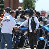 Hundreds of bikers await the family and the “chain breaking” dedication ceremony. They swarm the family for autographs and I watch in awe as they politely wait for their turn. I’ve seen worse-behaved Boy Scout troops.