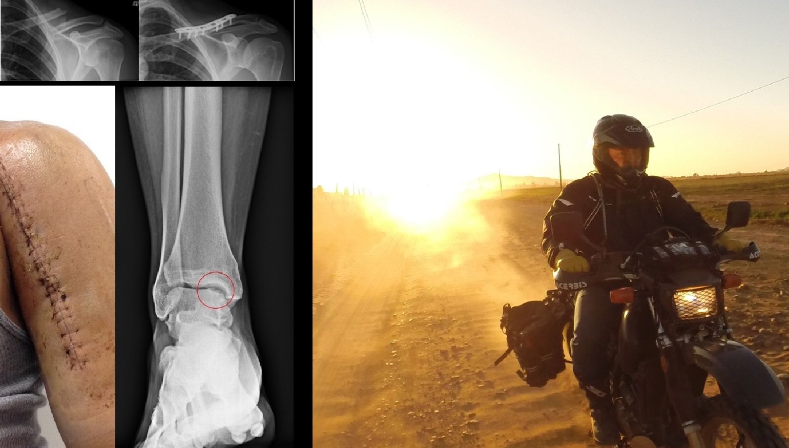 Every cicatrix tells a tale, every scar a story. Race day at Bay Mare. Second moto at Indian Dunes. A very cold dusk near Burro Schmidt’s tunnel. Over the cliff into an unexpected washout in the desert. An unseen slick of oil on the PCH.