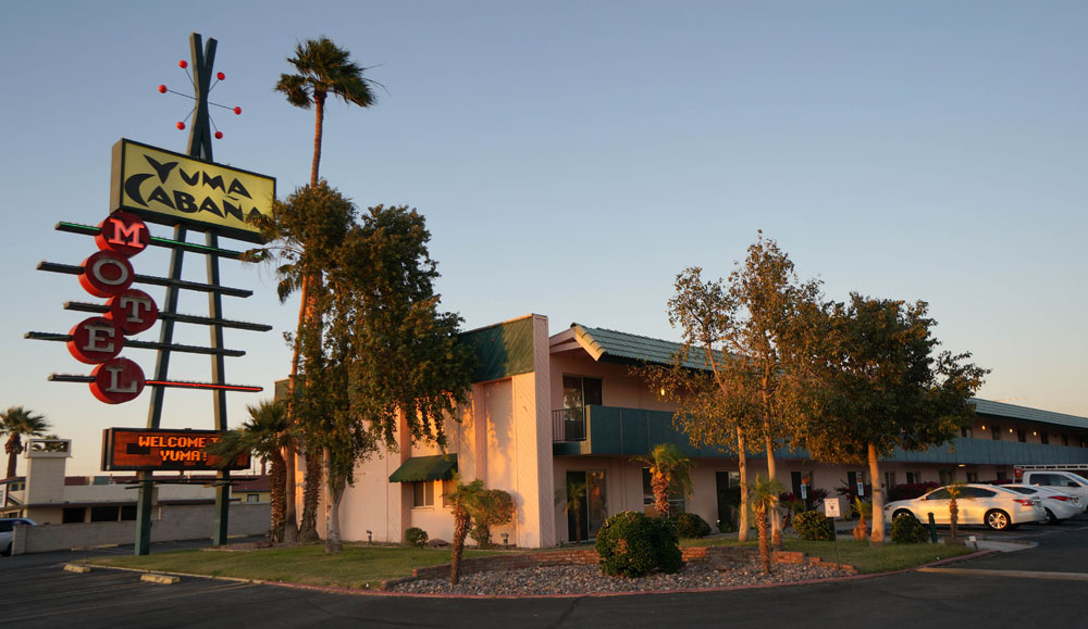 By our next gas stop, we were over it. Motel booked. A day riding at a 10 degree angle just to hold a straight line had beaten us, but we were determined to see Salvation Mountain and surrounding areas so we got a room in Yuma. The plan was to go for a swim and then hit the casinos — we were still in Arizona after all — but after eating too much BBQ and getting a drink we were too tired to go anywhere. We played cards for a bit and then I think I passed out to the end of Robocop.